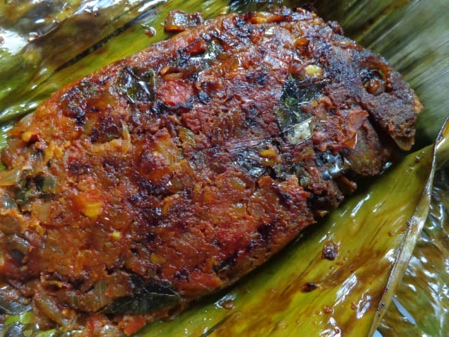 Karimeen Pollichathu in banana leaf. Karimeen or pearl spot eye is one of the most popular fish in Kerala especially in Alappuzha district. Dishes made with this fish like karimeen fry and pollichathu have a unique taste and flavor. These two dishes are the favorites of tourist who come to visit the beauty of Kuttanadu.