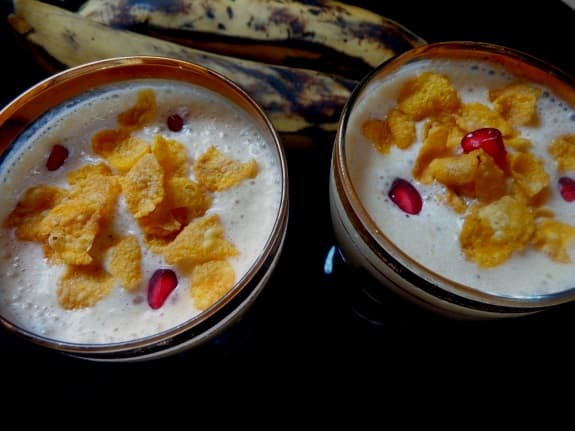 Plantain milkshake – Delicious and healthy milkshake with Kerala banana and milk. plantains are a natural superfood that many people are unaware of. This milkshake is prepared with plantain, milk, and sugar. Plantains are very reliable sources of starch and energy. Here I would like to share the recipe of a simple and delicious milkshake. I have added cornflakes and roasted peanuts as a topping which gives a crunchy taste to the shake but it is completely optional.